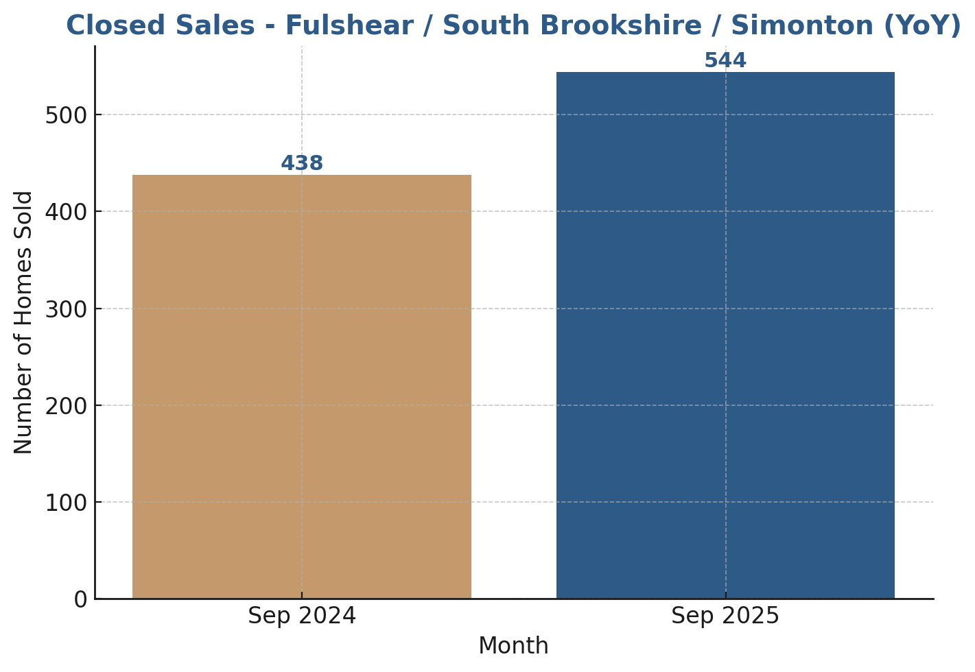 Homes in Fulshear, South Brookshire, and Simonton averaged 65 days on the market in September 2025, nearly 8 days faster than last year. Listings that feature modern updates, professional photos, and strong local representation are moving even quicker.