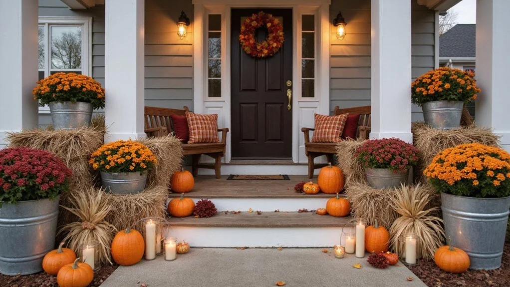 Front porch in Boerne, Texas decorated for fall.